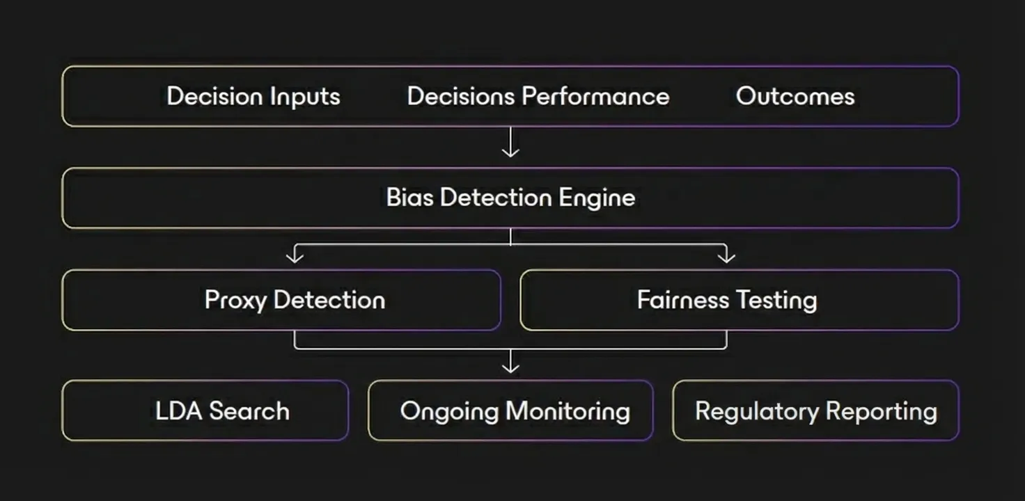 Test before production, monitor after deployment, surface less discriminatory alternatives, and automate fair lending reporting.